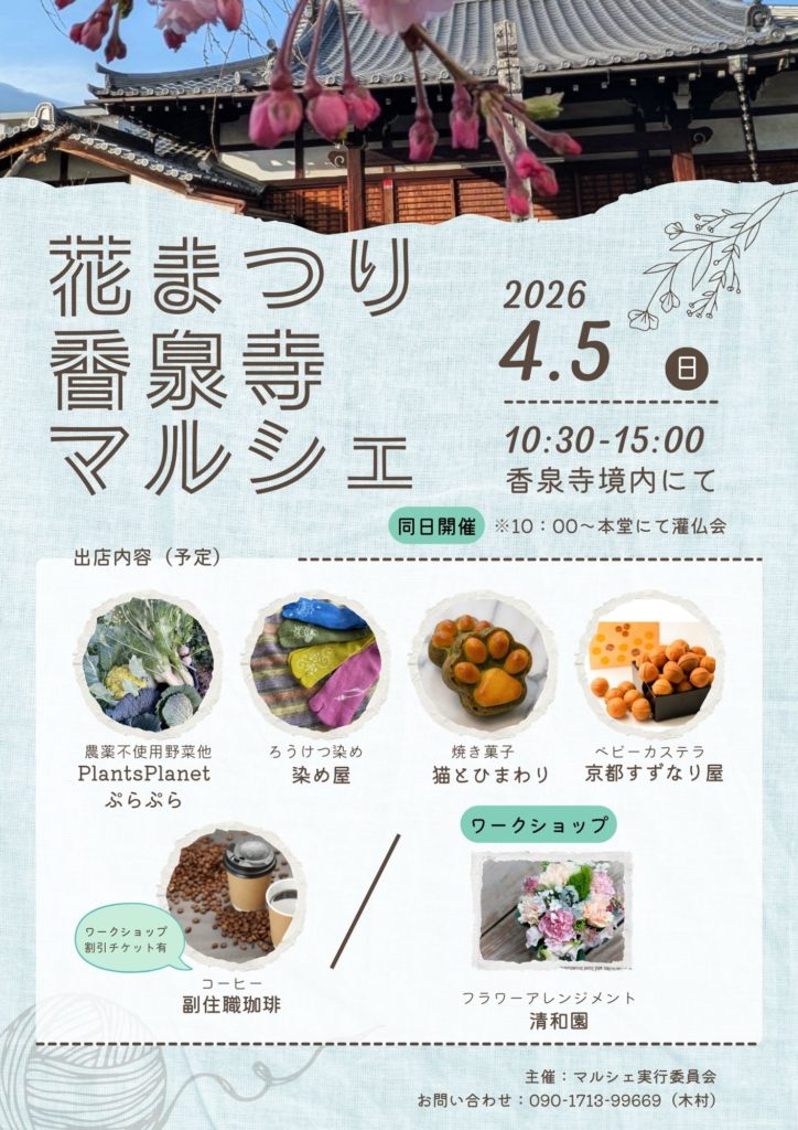 京都市南区にある香泉寺にて花まつりマルシェを開催します。
